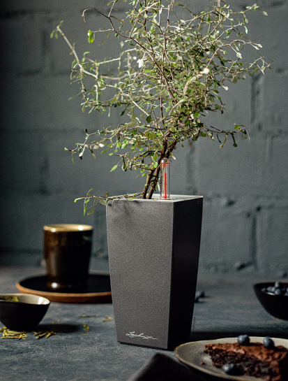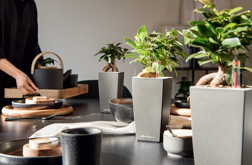 花瓶の感覚で気軽に飾れ、底面灌水の真価は卓上でこそ発揮される。
