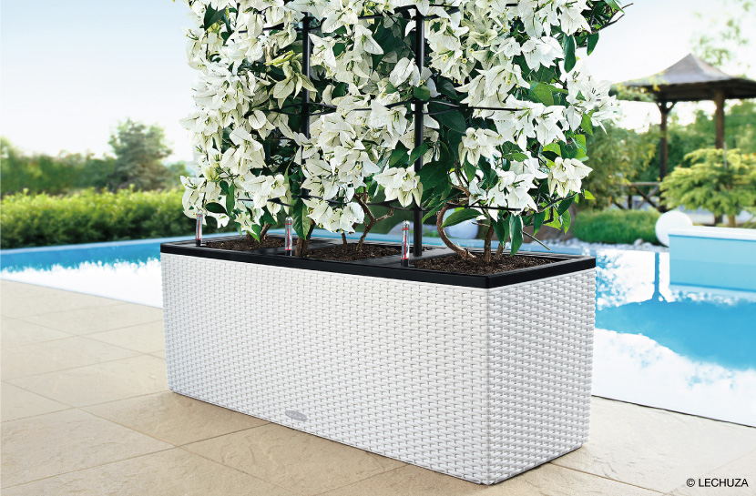 緑のプライバシースクリーンとしても使える100cmトリオ・プランター。