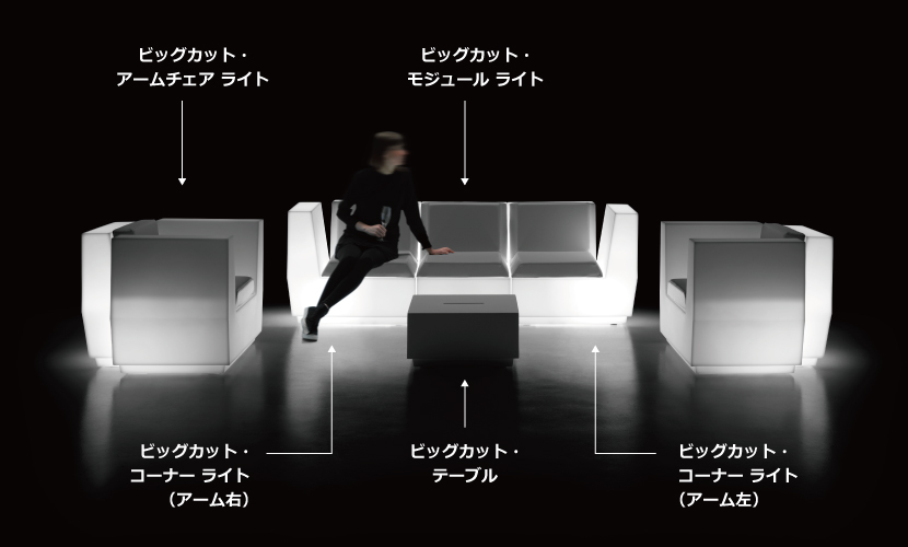 樹脂製デザイン家具「ポリファニチュア®」のライト付きモデルは、