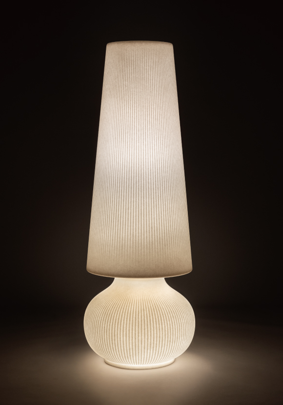点灯時・消灯時で表情が変わる、ストライプ仕上げの大型ライト。