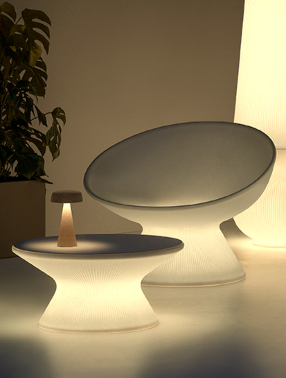 どこでも気軽に彩りをそえるポリエチレン樹脂製デザイン家具。