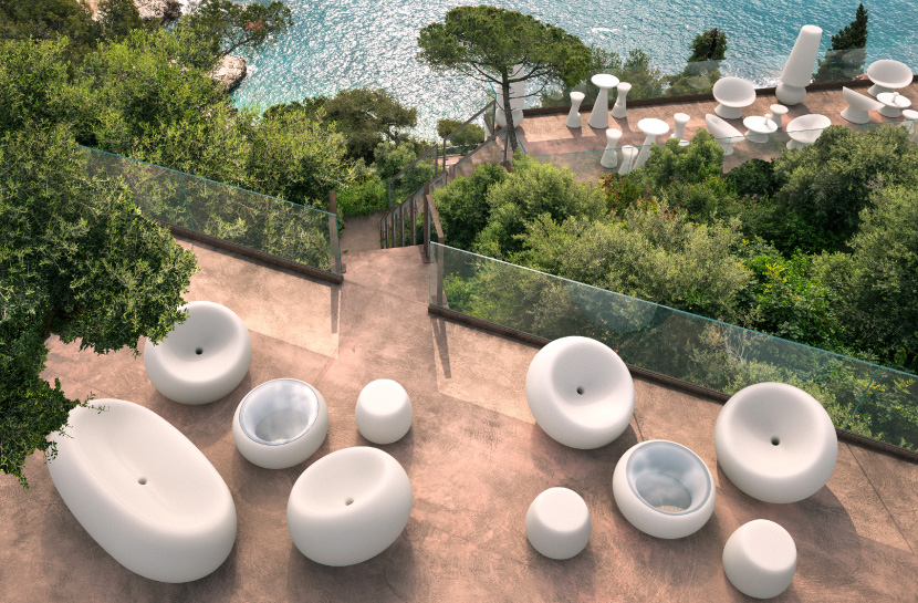 どこでも気軽に彩りをそえるポリエチレン樹脂製デザイン家具。