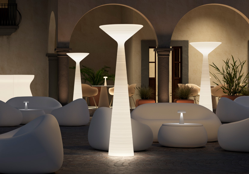 どこでも気軽に彩りをそえるポリエチレン樹脂製デザイン家具。